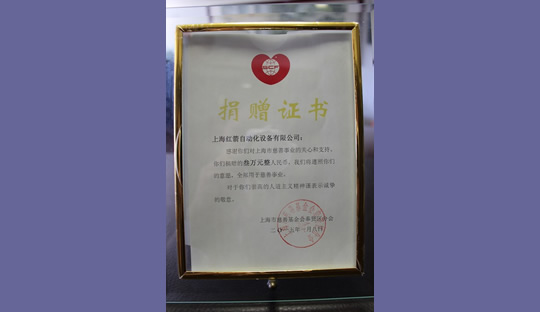 2015年,上海紅箭自動(dòng)化設(shè)備有限公司為上海市慈善基金會(huì)捐款